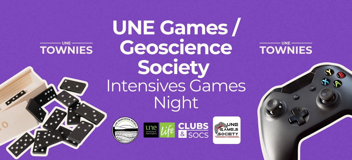 The UNE Gaming Society and Geoscience Society have teamed up to bring you a Games Night to help with a brain break during intensives!